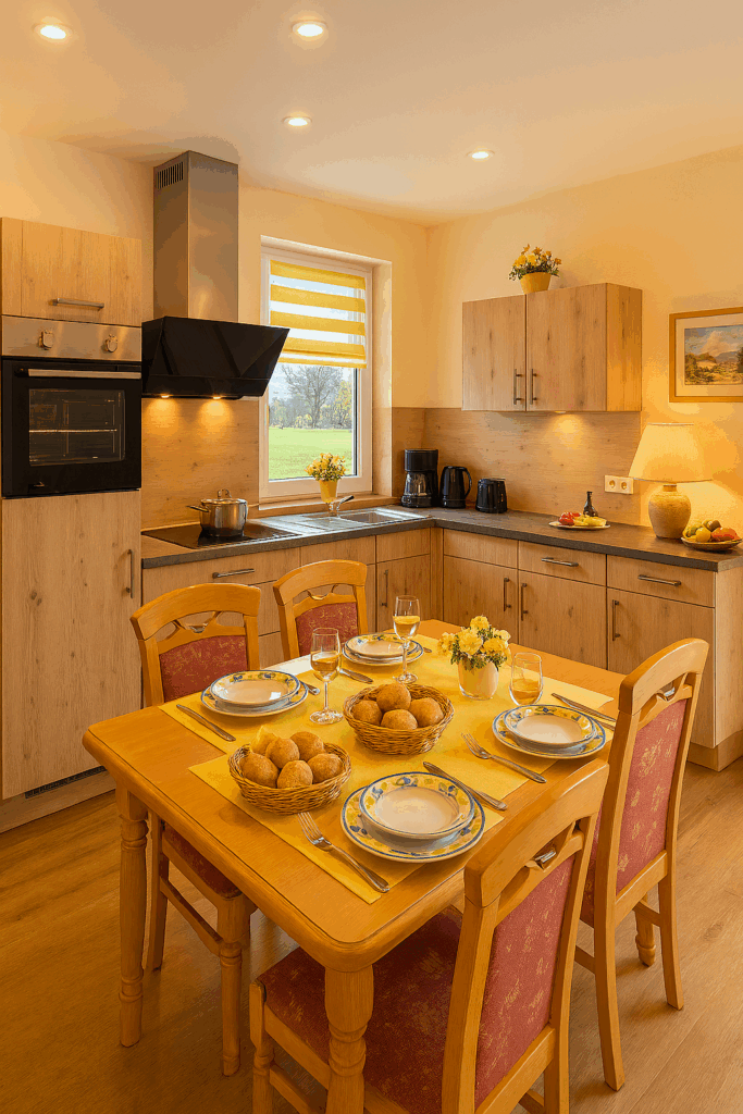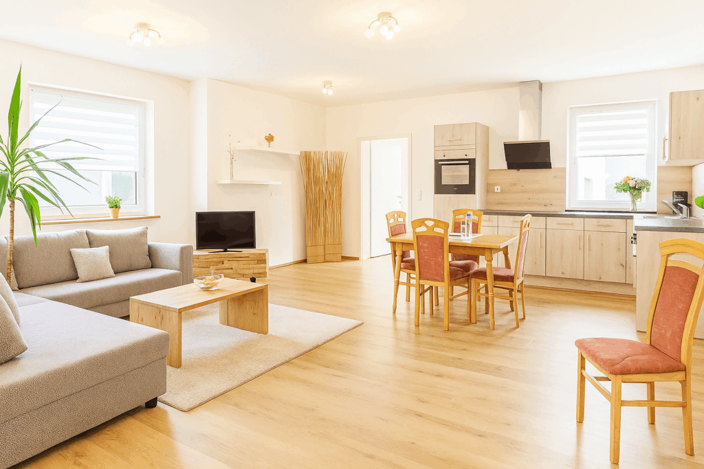 Unsere Ferienwohnung Wiesethblick mit 60 m² bietet Platz für 2-4 Personen barrierefrei im Ergeschoss gelegen.